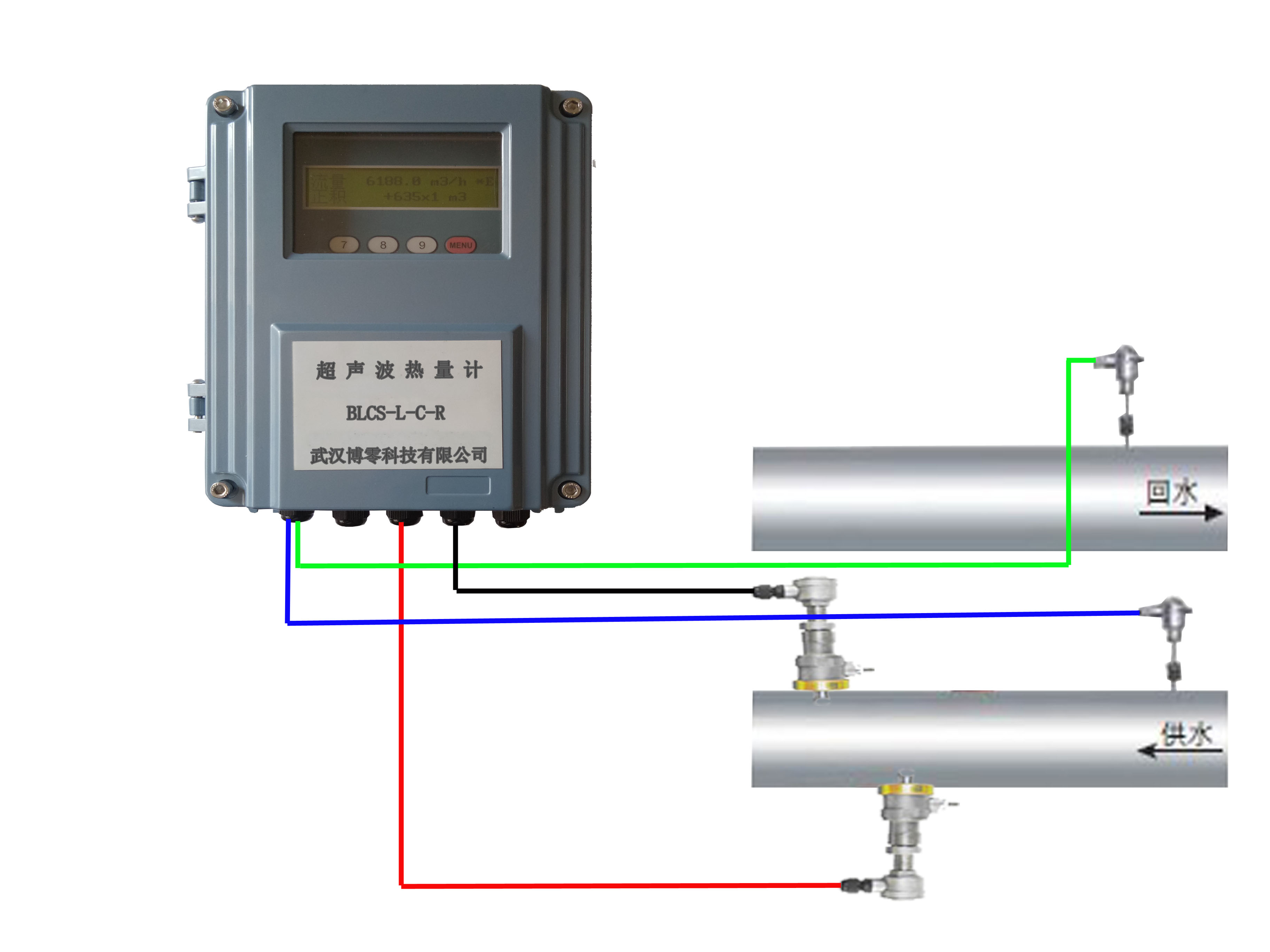 4.在供水管和回水管上各安装一支PT100热电阻。